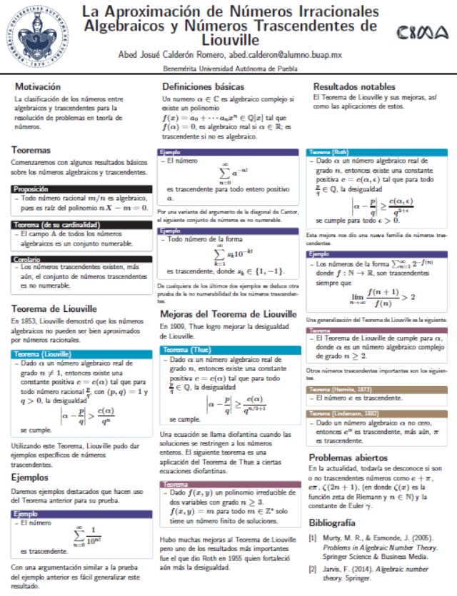 La Aproximación de Números Irracionales Algebraicos y Números Trascendentes de Liouville | Abed Josué Calderón Romero