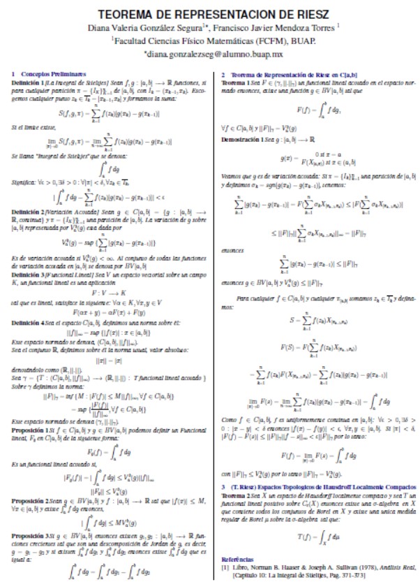 Teorema de Representacion de Riesz | Diana Valeria González Segura, Francisco Javier Mendoza Torres