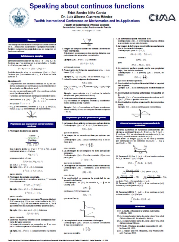Speaking about continuos functions | Erick Sandro Niño García, Dr. Luis Alberto Guerrero Méndez