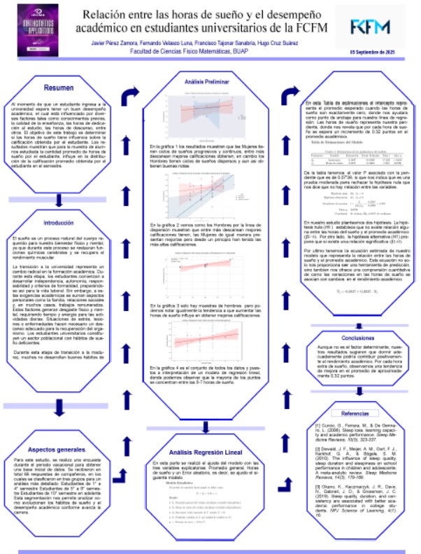 Relación entre las horas de sueño y el desempeño académico en estudiantes universitarios de la FCFM | Javier Pérez Zamora, Fernando Velasco Luna, Francisco Tajonar Sanabria, Hugo Cruz Suárez