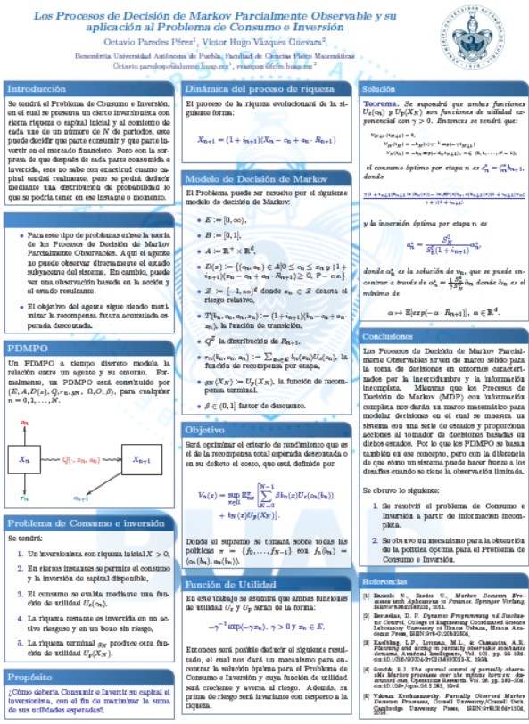 Los Procesos de Decisión de Markov Parcialmente Observable y su aplicación al Problema de Consumo e Inversión | Octavio Paredes Pérez, Víctor Hugo Vázquez Guevara