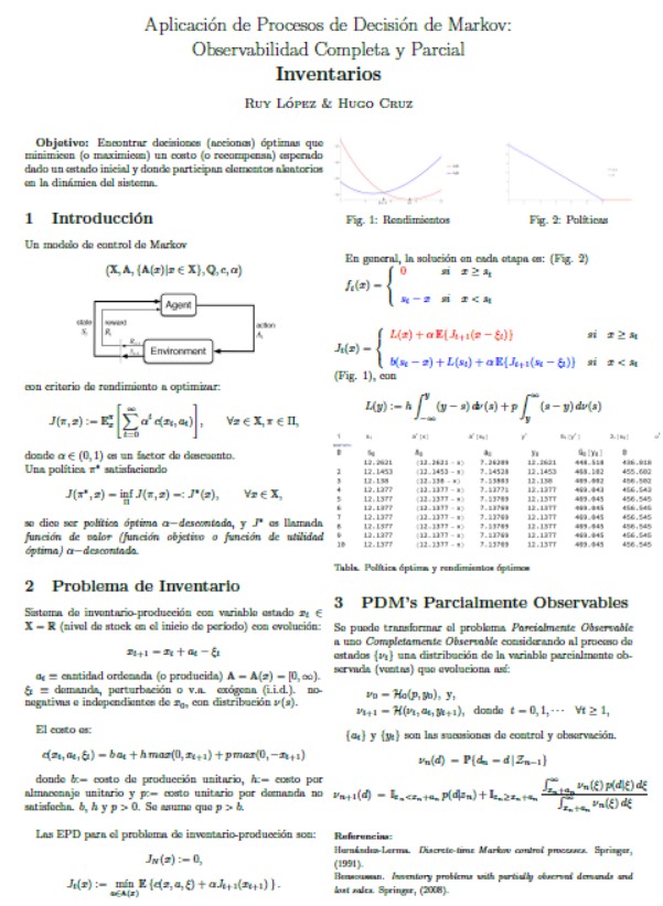 Aplicación de Procesos de Decisión de Markov: Observabilidad Completa y Parcial | Ruy Alberto López Rios, Hugo Cruz Suárez