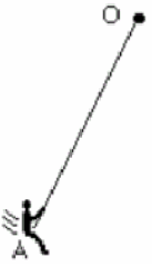 Pregunta 3 La figura adjunta muestra a un chico columpiándose en una cuerda, comenzando en un punto más alto que A. Considérense las siguientes fuerzas: 1. Una fuerza hacia abajo debida a la gravedad. 2. Una fuerza ejercida por la cuerda dirigida de A hacia O. 3. Una fuerza en la dirección del movimiento del chico. 4. Una fuerza en la dirección de O hacia A. ¿Cuál(es) de dichas fuerzas actúa(n) sobre el chico en la posición A? sólo la 1 1 y 2 1 y 3 1, 2 y 3 1, 3 y 4